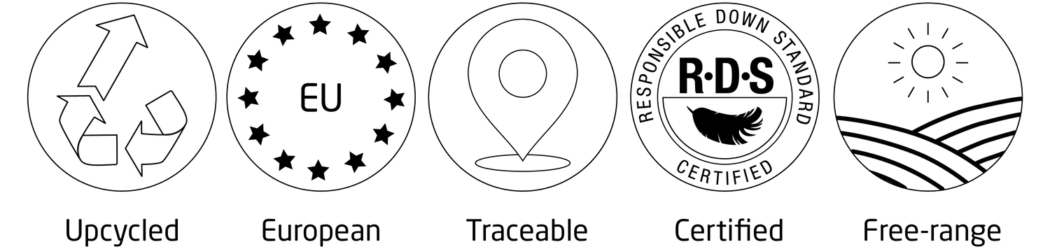 それは、国際的な証明書や規制に比べて厳しいものであり、すべてのダウンは100%トレーサビリティ可能です。私たちが取り扱うダウンはヨーロッパダウンのみを使用し、生きた鳥からの羽毛採取は行われません。動物愛護や原材料について消費者の関心はますます高まっています。